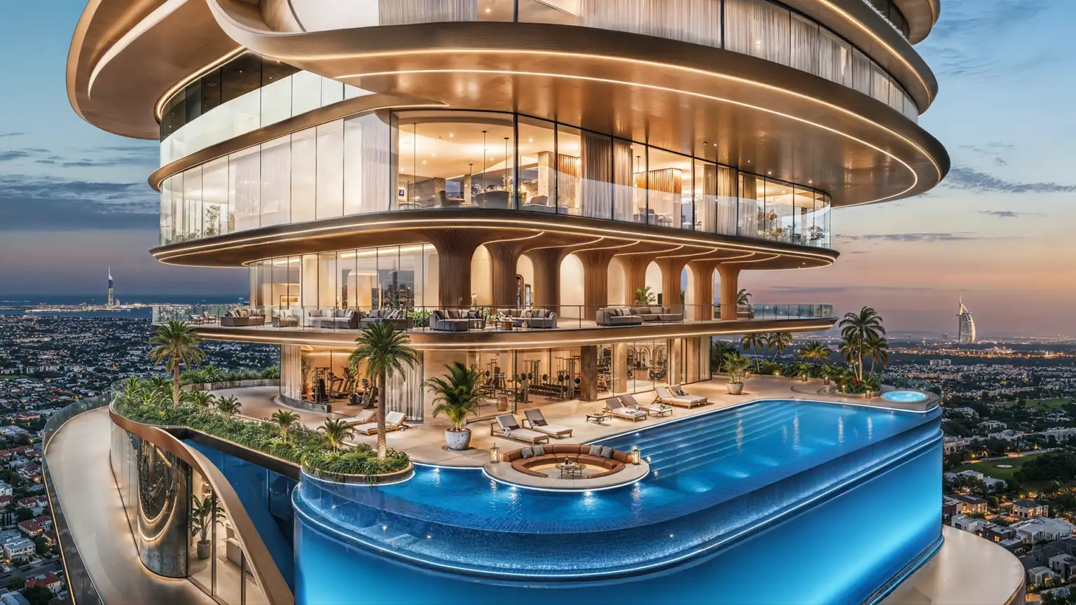 High-Tech Amenities: Includes a sky pool, valet services, and a helipad prepared for future aerial mobility (air taxis).
